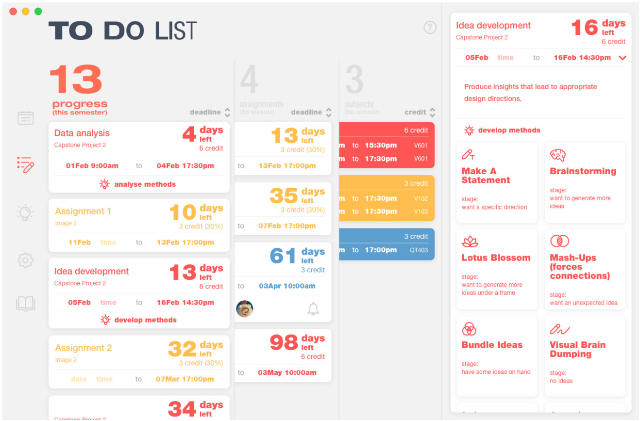 User Experience The UX project is a group from a final year project and their design research is slightly different from other projects. User testing and iterative design are embedded into their design process.