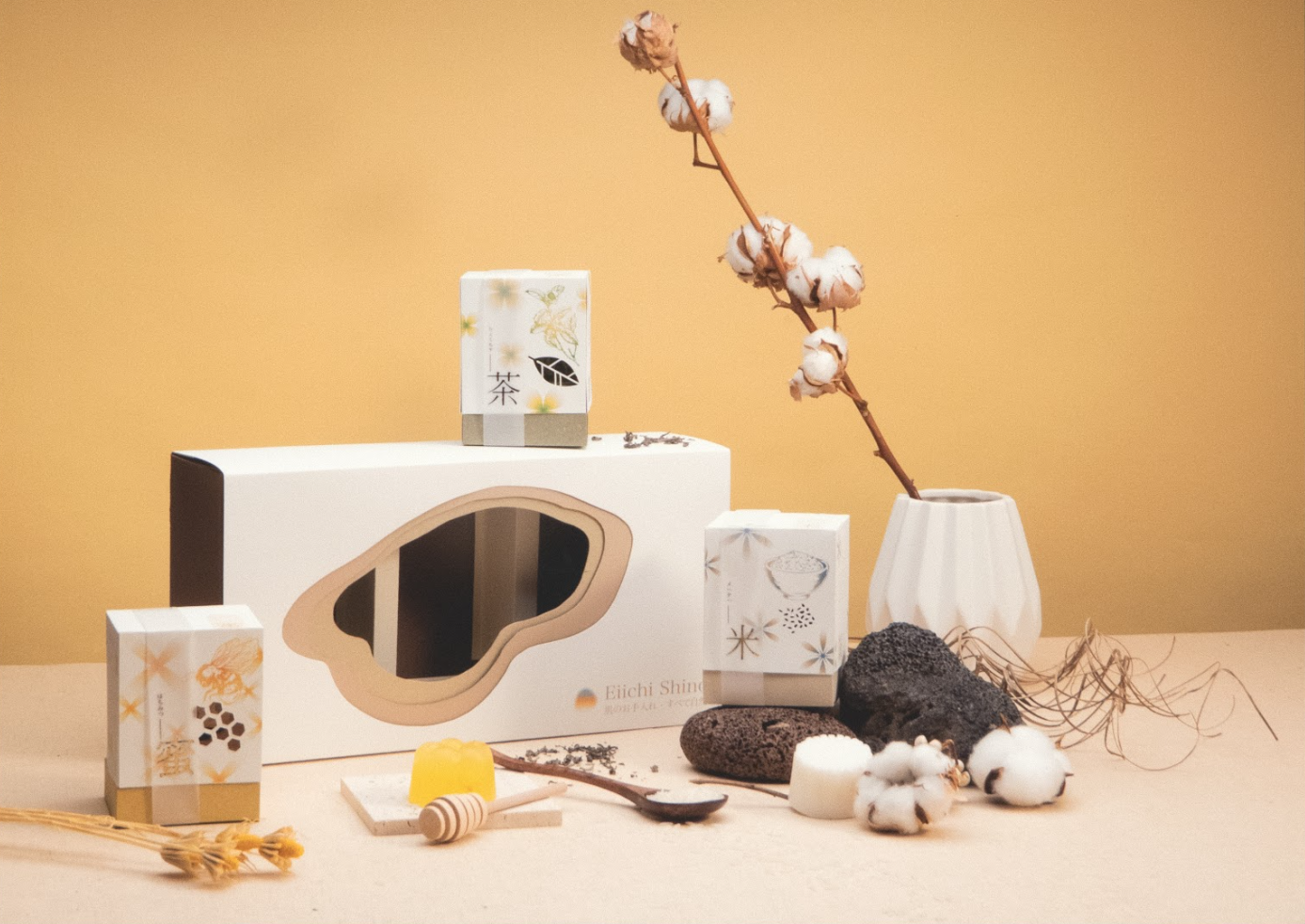A packaging belt is designed for each of the daily object, like the cultery or larger items. A belt with pattern will be wrapped on the product packaging to represent the brand identity, and it will be utilised in different size of packaging. The pattern are mainly some daily object related to people’s impression about sense of ritual, such as hand-made stuff, flowers or coffee such common items in daily live. There wouldbe a QR code included for user to scan and suggest them to download the application, and encourage them to use such daily object to practice the rituals together