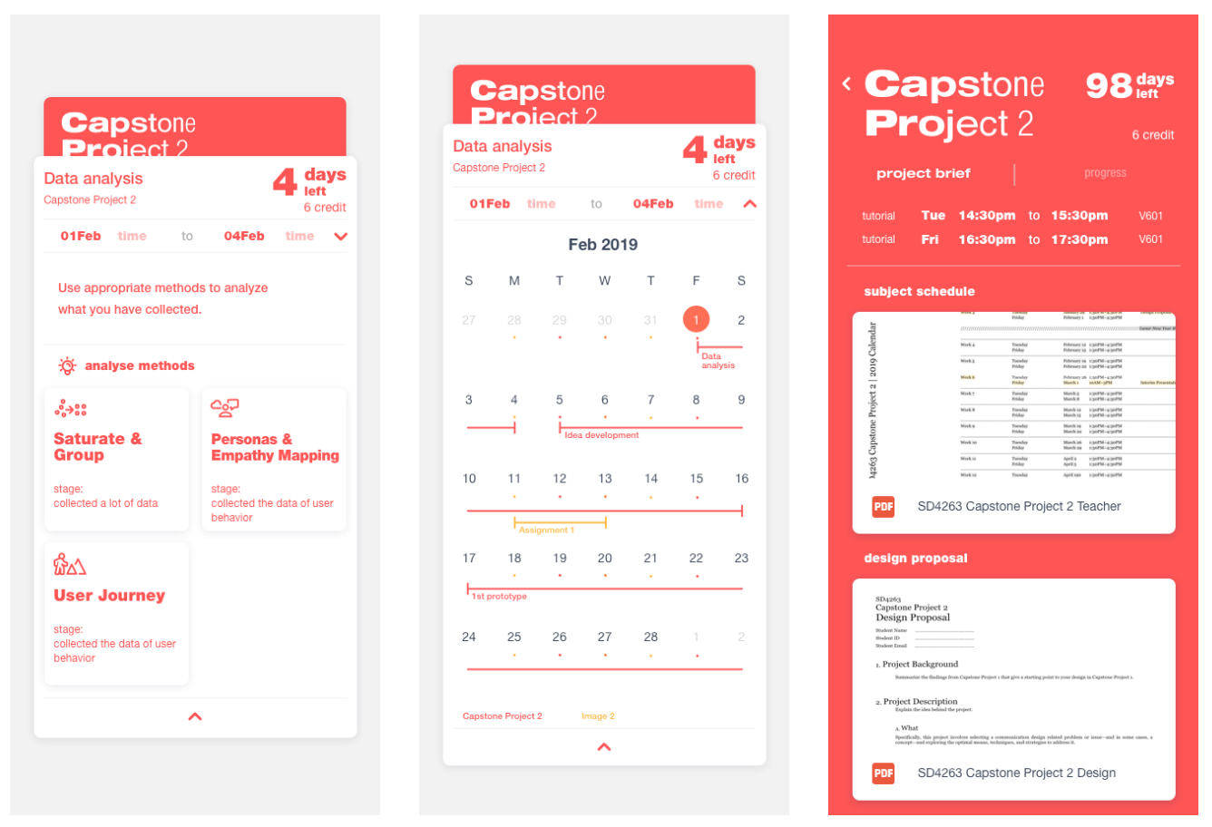 User Experience The UX project is a group from a final year project and their design research is slightly different from other projects. User testing and iterative design are embedded into their design process.